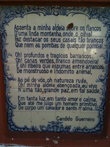 We were taken to visit the historical town of Alte. Much is done to restore and preserve the ancient origins of this town, almost as a living monument. It is at the Roman fountains where we collected bottles and bottles of pure water that I first came face to face with the poem written by “the poet of Alte”, Francisco Xavier Cândido Guerreiro (1871–1953).