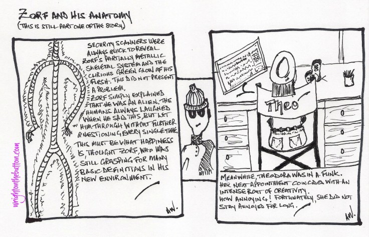Zorf appears here and here so far. Theodora and Zorf share the same birthday. What can I say? Their stars collided. They were destined to meet!