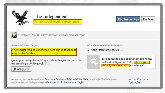 My Facebook language is set to Portuguese – as you can tell by all the yellow highlighted bits in English.