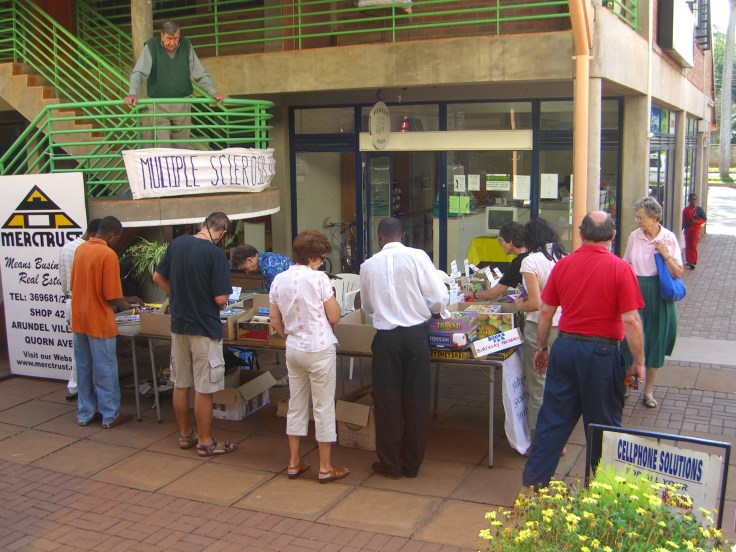 In Zimbabwe, help for people with MS came from the local MS Society, a registered charitable organisation. João and I were both members of the society, and served on the committee for a number of years. Suddenly, you become aware of all the other people in the same boat as you. Some of them are in a leakier boat. Some of them are actually boat builders who still cannot get used to the idea that they will never finish the boat they are “currently working on”. You get to know each other, and even like each other.