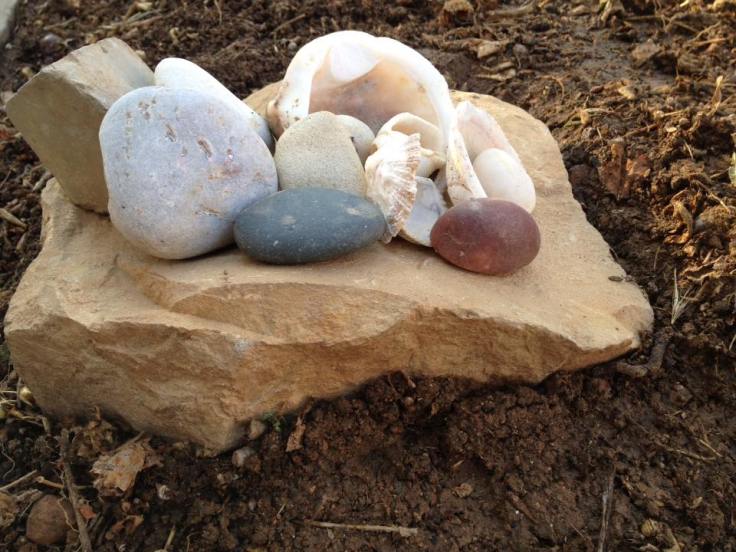 I see that, from the so-called Facebook memories, that on this day in 2014, I wrote no fewer than 1,589 words as a personal update. I have now copied and pasted them into a Word file, for they are worth keeping. There is a more efficient way of doing such things, I know. I downloaded “everything” on my Facebook page in March, but oh, I have added so much since. At least I know where that particular piece of writing is; for now anyway, since I am not methodical, and nowhere near as solid as the rocks and shells in my little flowerbed arrangement pictured here.