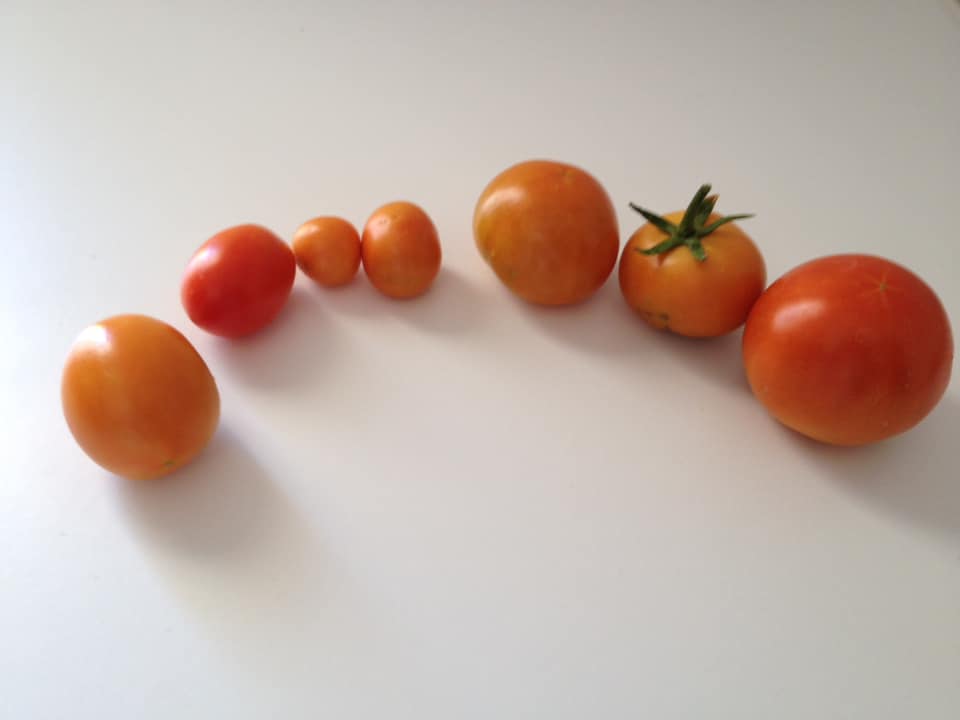 Second from left in the image below is a Roma tomato, also known informally as “Italian tomatoes”. My mother said once that they were her favourite, and that’s why I planted them.